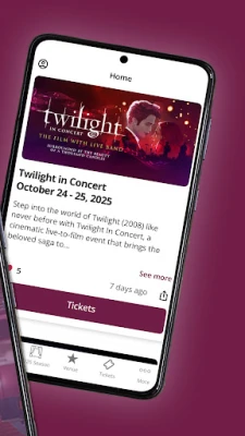 • Purchase single, group, or season subscription tickets directly through the app.