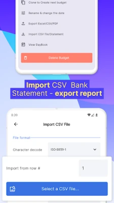 • Import CSV bank statements to the daily income and expense manager