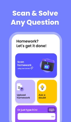 The homework scanner app offers multiple convenient ways to input homework questions. You can simply upload an image of the question from your device’s gallery to the AI homework helper app. The homework AI scanner lets you scan and solve problems. You can snap a photo of the question and upload it directly to the app. The AI homework solver also supports voice search and type input, where you can either type your questions or enter a voice input to get solutions from the homework answer scanner app.