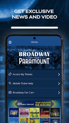 Broadway at The Paramount is excited to announce a new app! With the aid of the Broadway at The Paramount app, fans may now connect their Ticketmaster account for mobile entry. In addition to accessing your tickets all in one place, this app provides information and links to make the most of your visit to The Paramount Theatre.