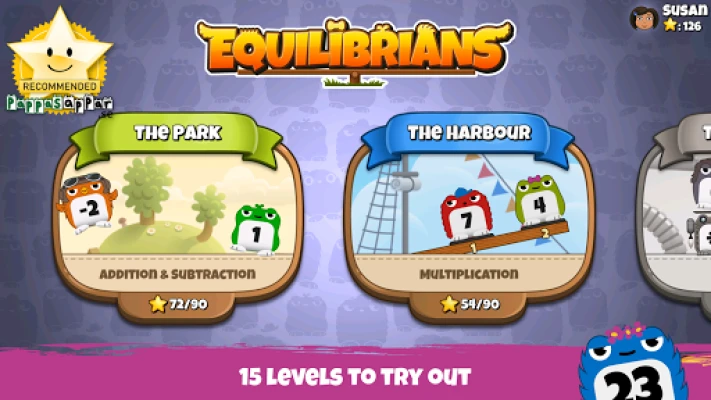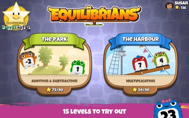 The Equilibrians are small creatures of different weight that seek balance. Your task is to place them on the seesaw and make sure that it is balanced. A tricky puzzle game for problem solvers of all ages!