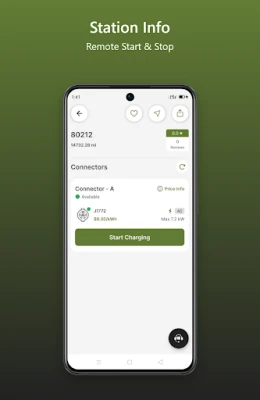 - Details Site Info Screen: You can view detailed information about charging stations, including location, Availability, Amenities, Pricing, Opening times and more.
