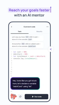 Stuck on a task? Your AI mentor jumps in with guidance — no waiting, no guessing.