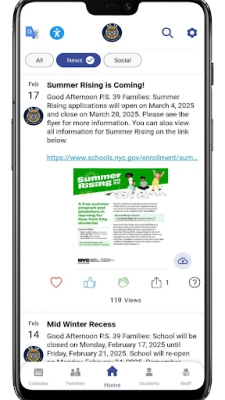Key Features:\nStudents: Stay on top of your academic game with easy access to schedules, grades, and a wealth of classroom resources.\nFamilies: Engage with the school community through PTA updates, connect with our dedicated staff via the staff directory, and receive comprehensive student reports.\nStaff: Utilize essential data at your fingertips, integrate Positive Behavioral Interventions and Supports (PBIS) into your daily practice, and access Continued Teacher and Leader Education (CTLE) resources for professional development.\nWhat's New:\nKeep informed with real-time push notifications for school news.\nAccess all social media updates from the school in one consolidated feed.\nCalendar