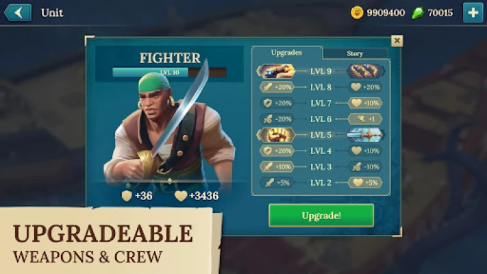 Start with a small boat and end with a legendary Ship equipped for battle. With dozens of weapons, modules, and pirates, no two builds are alike. Ship games rarely offer such detailed construction. Your loadout decides your chances in both PvE and PvP.
