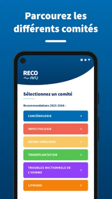 RecoAFU aide les professionnels à adapter leurs pratiques en fonction des dernières avancées cliniques et scientifiques. L'application simplifie l’accès aux recommandations des comités de l’AFU, offrant un outil complet et fiable aux praticiens, pour qu’ils puissent prendre des décisions cliniques basées sur les données les plus récentes et appropriées pour chaque situation clinique.