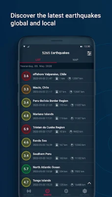 ✔ See the latest earthquake events from around the globe, e.g., magnitudes, depth and more