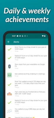 You can also sync with Android Health Connect to sync steps from supported wearable pedometers and fitness trackers like Fitbit, Samsung Health, Android Wear devices, Xiaomi, MiBand, Moto 360, Garmin, Withings, Oura, Whoop and many more to Step Up step counter app.