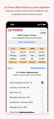 * Pricing Guides – View wholesale, retail, and trade-in values from J.D. Power, Black Book, Kelley Blue Book, Galves, MMR, and more.